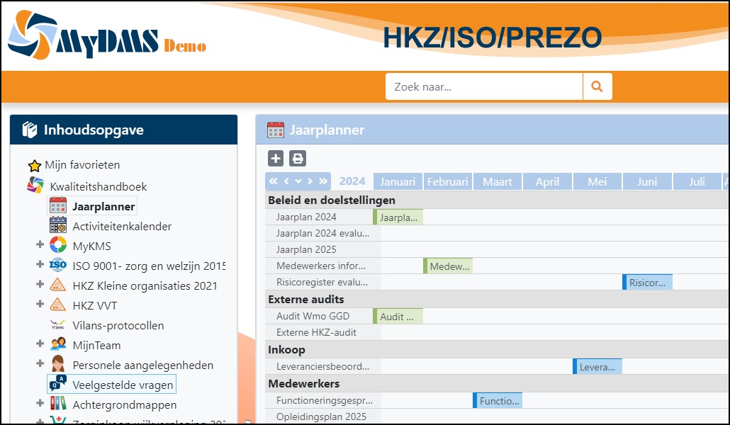 Elke dag worden we in de zorg geconfronteerd met complexe procedures en richtlijnen, waardoor het waarborgen van kwaliteit een uitdaging kan zijn. Daarom hebben we MyKMS ontwikkeld. Een slim kwaliteitsmanagementsysteem ontworpen voor de zorg. De software helpt organisaties bij het verbeteren en waarborgen van hun processen met focus op kwaliteit.