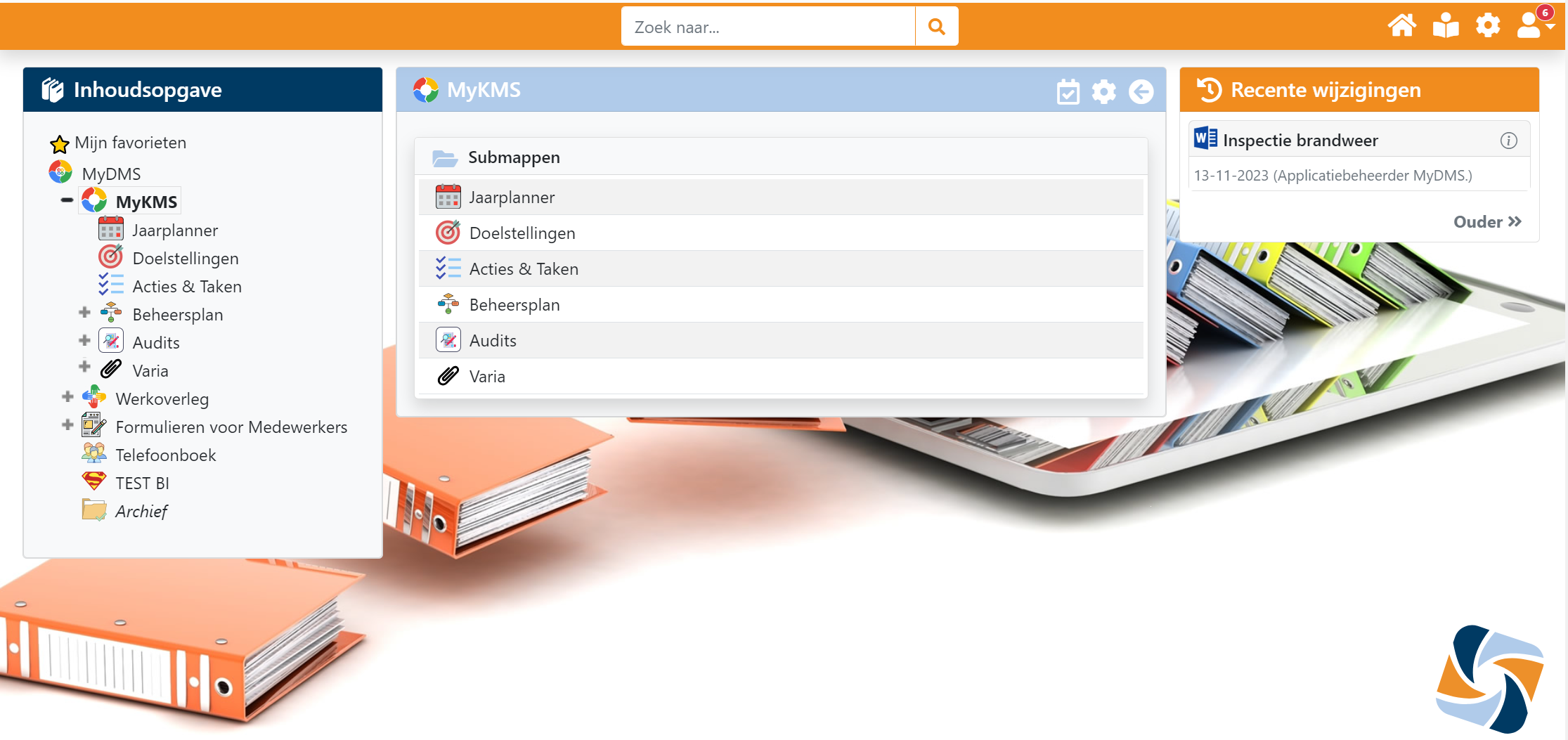 In 2023 hebben wij MyKMS ontwikkeld, een slim kwaliteitsmanagementsysteem (KMS) speciaal ontworpen voor de zorgsector. Wij zagen dat er behoefte was aan een systeem dat naadloos aansluit op de unieke eisen en processen binnen de zorg. MyKMS is eenvoudig te integreren in jouw zorgorganisatie en verbetert de kwaliteitscontrole, efficiëntie en naleving van regelgeving. Ons KMS helpt je bij het beheren, monitoren en optimaliseren van zorgprocessen, zodat je altijd voldoet aan de hoogste standaarden.